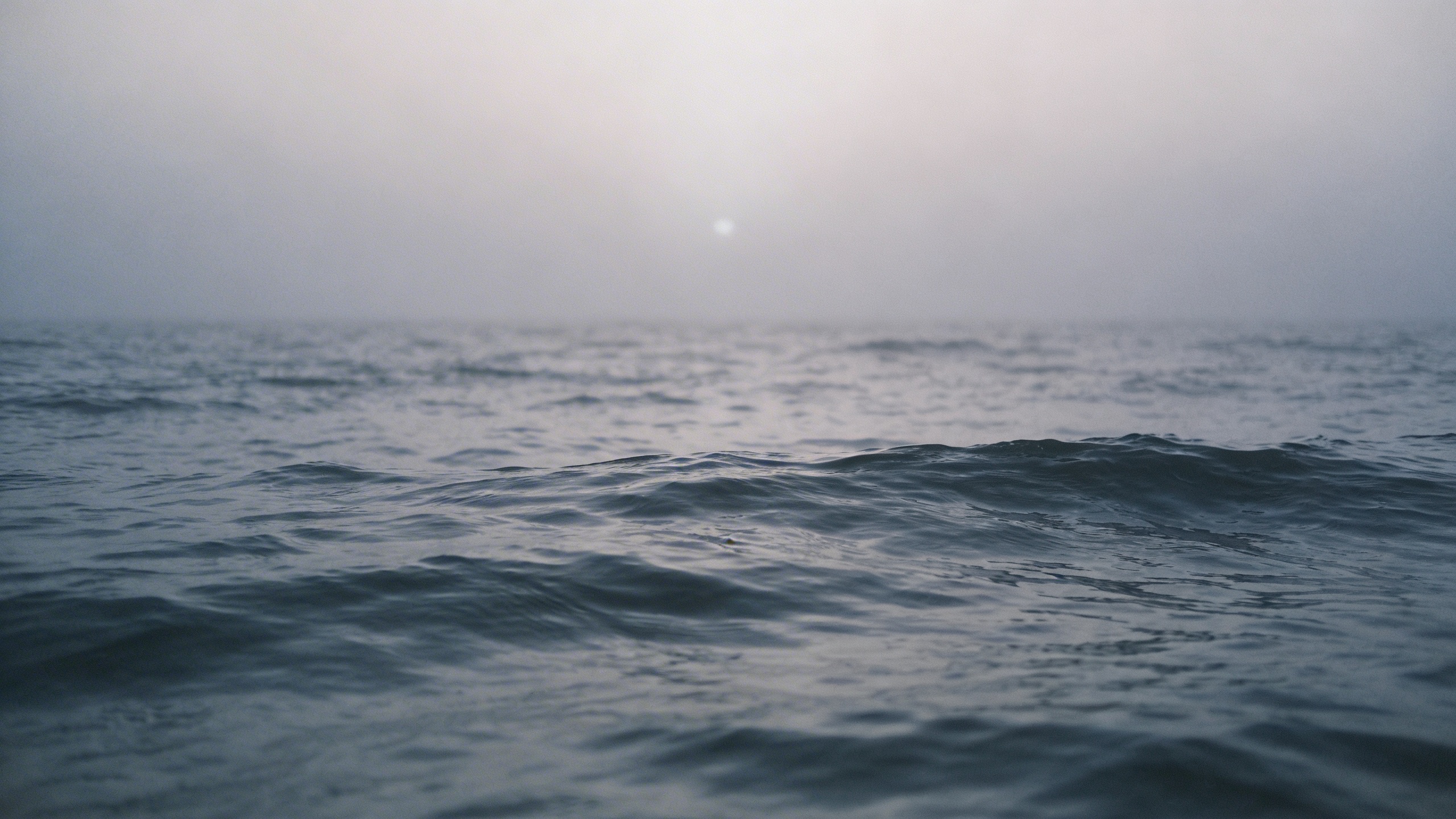 Prompt: "realistic stock photo, moody ocean horizon with gentle waves, foggy morning, minimal composition, plenty of negative space, 35mm lens, cool gray-blue palette, no text"