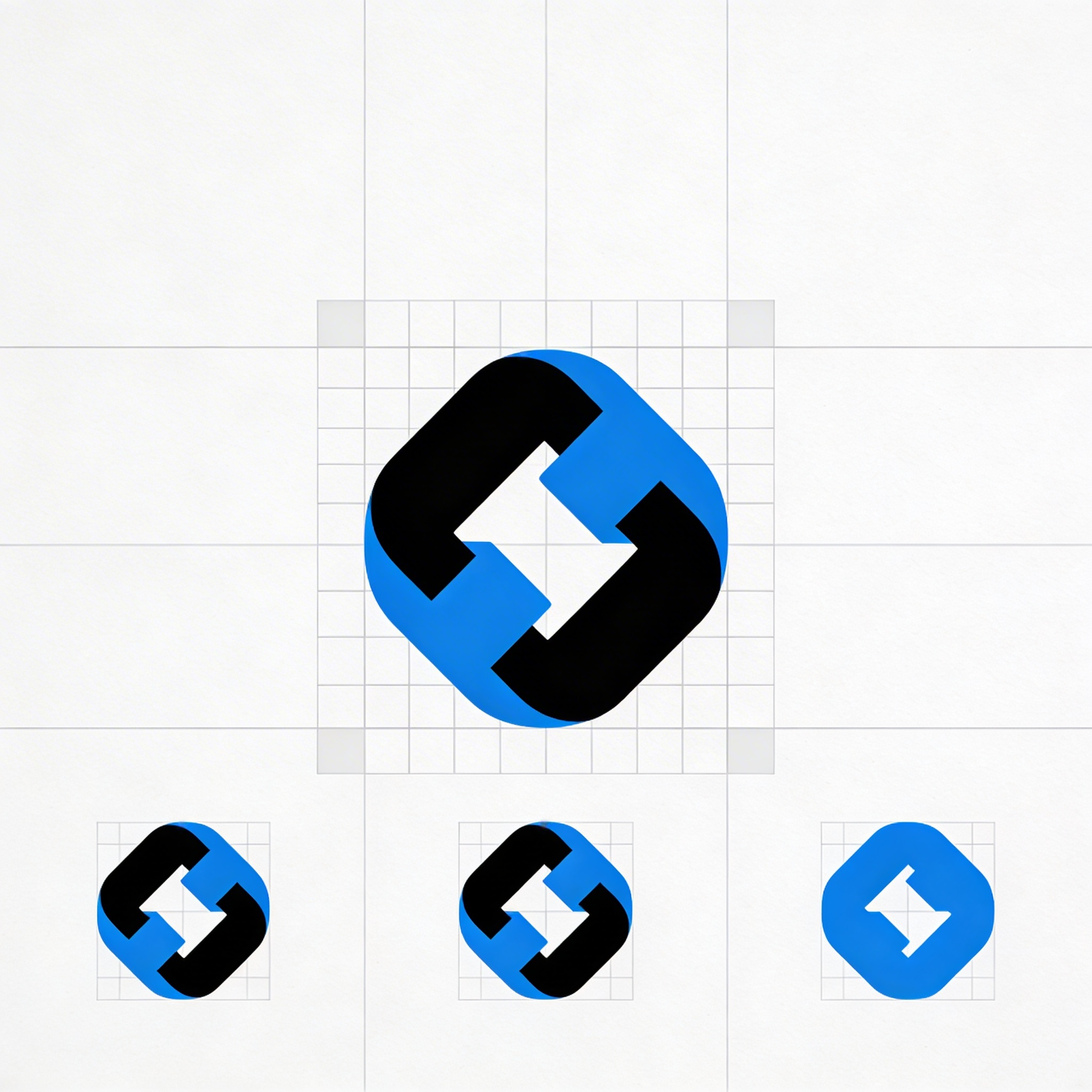 Prompt: "adaptive modular logo system, primary symbol plus 3 simplified variations for small sizes, consistent geometry grid, flat vector style, high legibility, modern branding system, black and electric blue palette, no gradients, no shadows, no mockup"