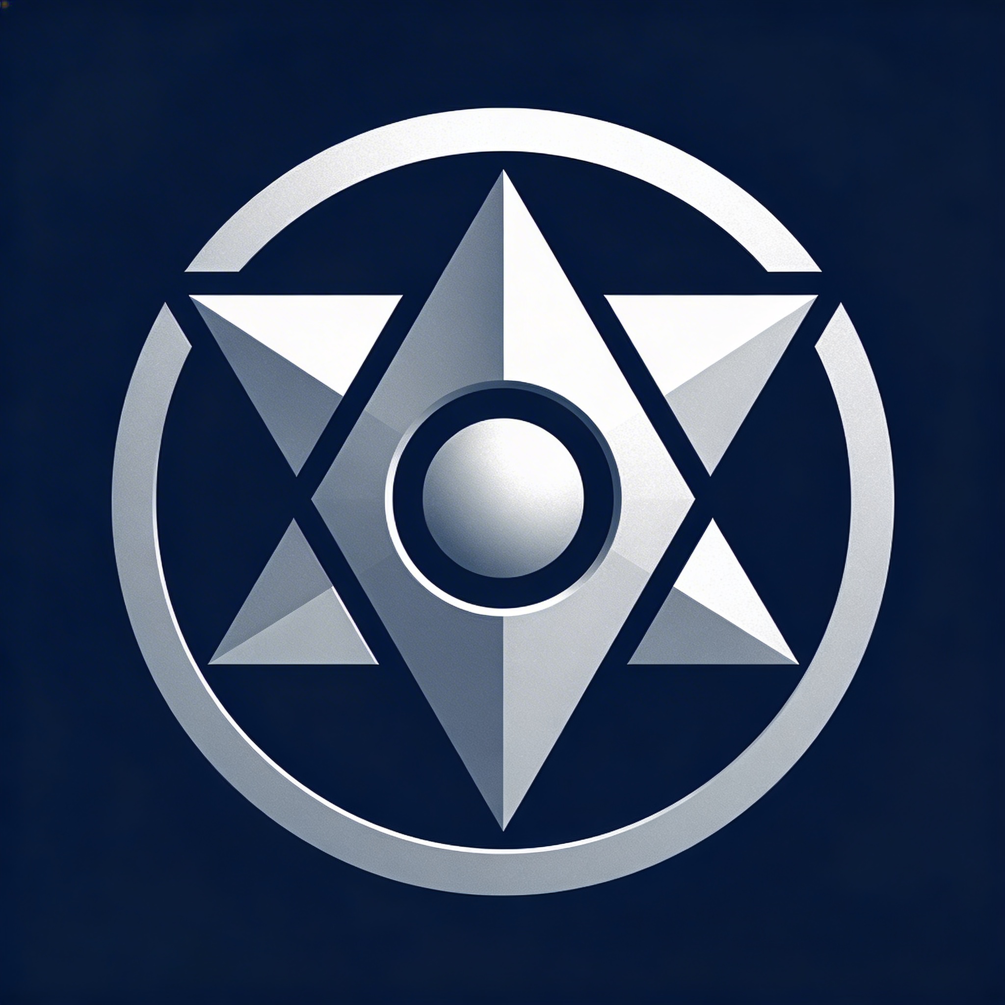 Prompt: "retro-futuristic geometric logo symbol, 1970s aerospace inspiration, clean vector shapes, subtle 3D depth suggested with minimal flat shading only, navy and silver palette, modern tech brand feel, scalable, no photorealism, no mockup"
