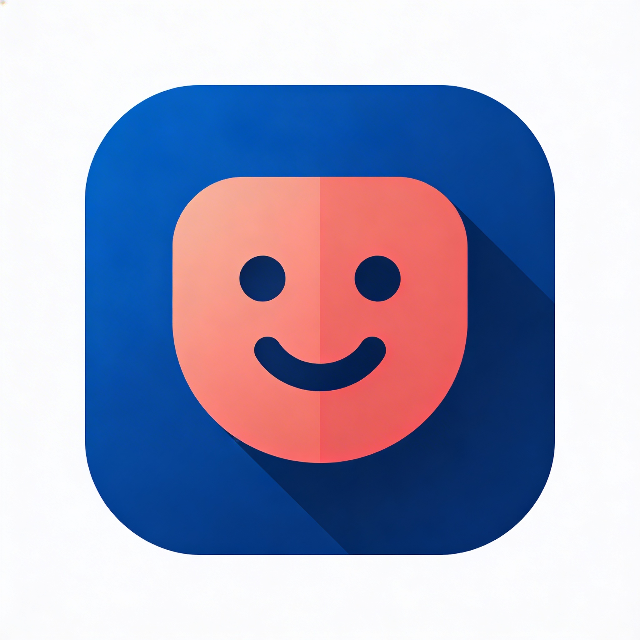 Prompt: "friendly modern app logo icon, rounded geometric mascot-less symbol, simple abstract shape with subtle smile curve, flat vector, bright but mature palette of cobalt blue and soft coral, high legibility at small sizes, no gradients, no 3D, no mockup"