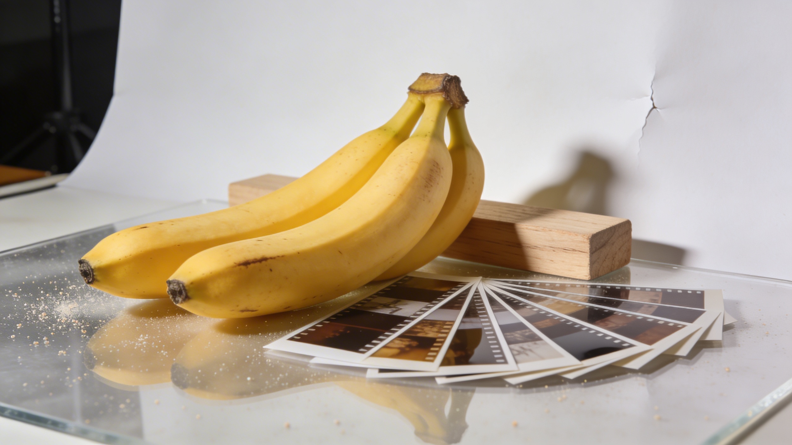 If everything is too aligned, the image reads as synthetic. Add a single controlled imperfection: a slightly crooked sticky note (blank), a small crease in the background paper, one banana slightly rotated.