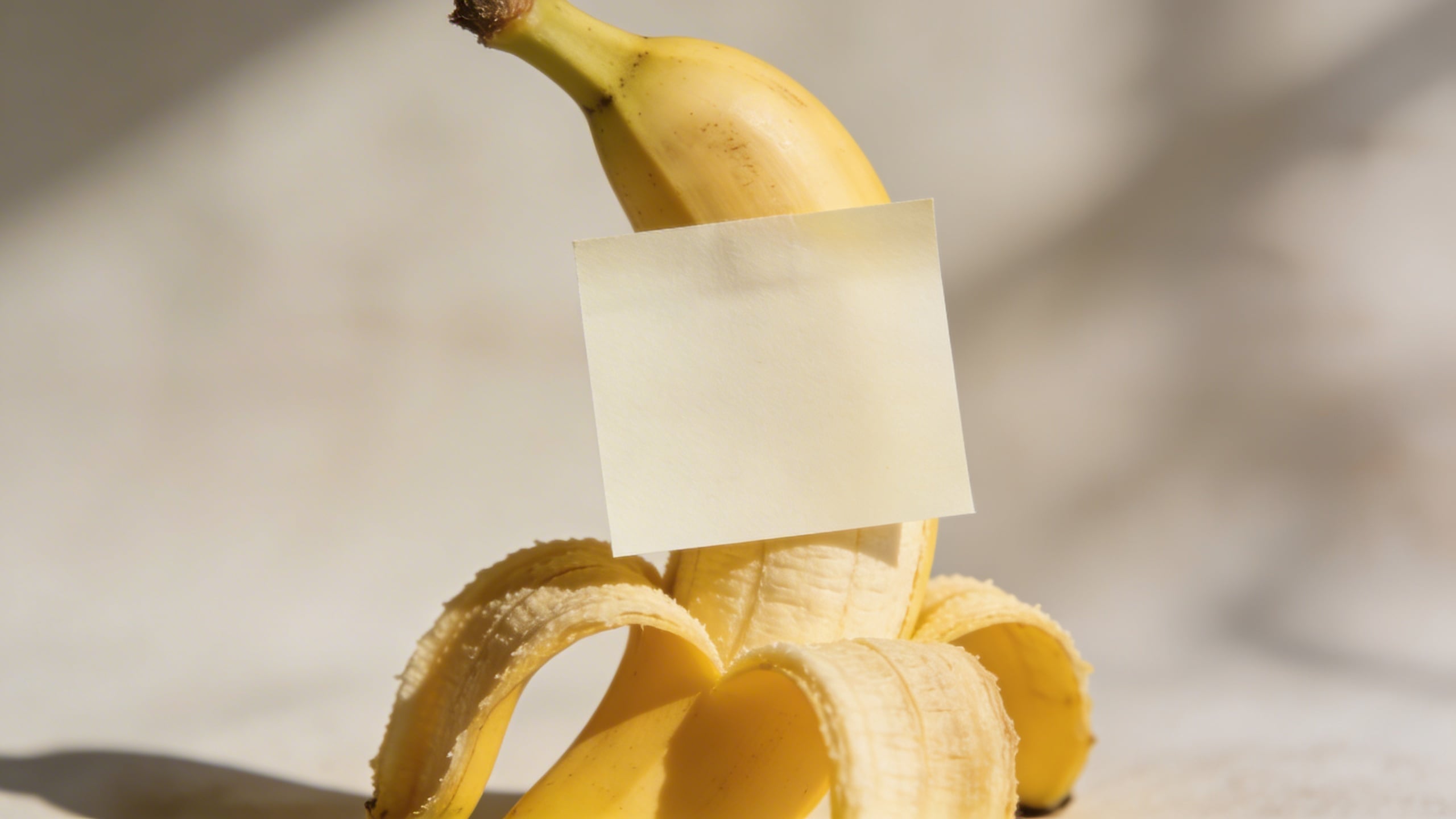 Prompt: "editorial stock photo, banana with a small sticky note blank (no text) on a pastel mint background, softbox lighting, gentle shadow, minimal composition, copy space on top, photoreal"
