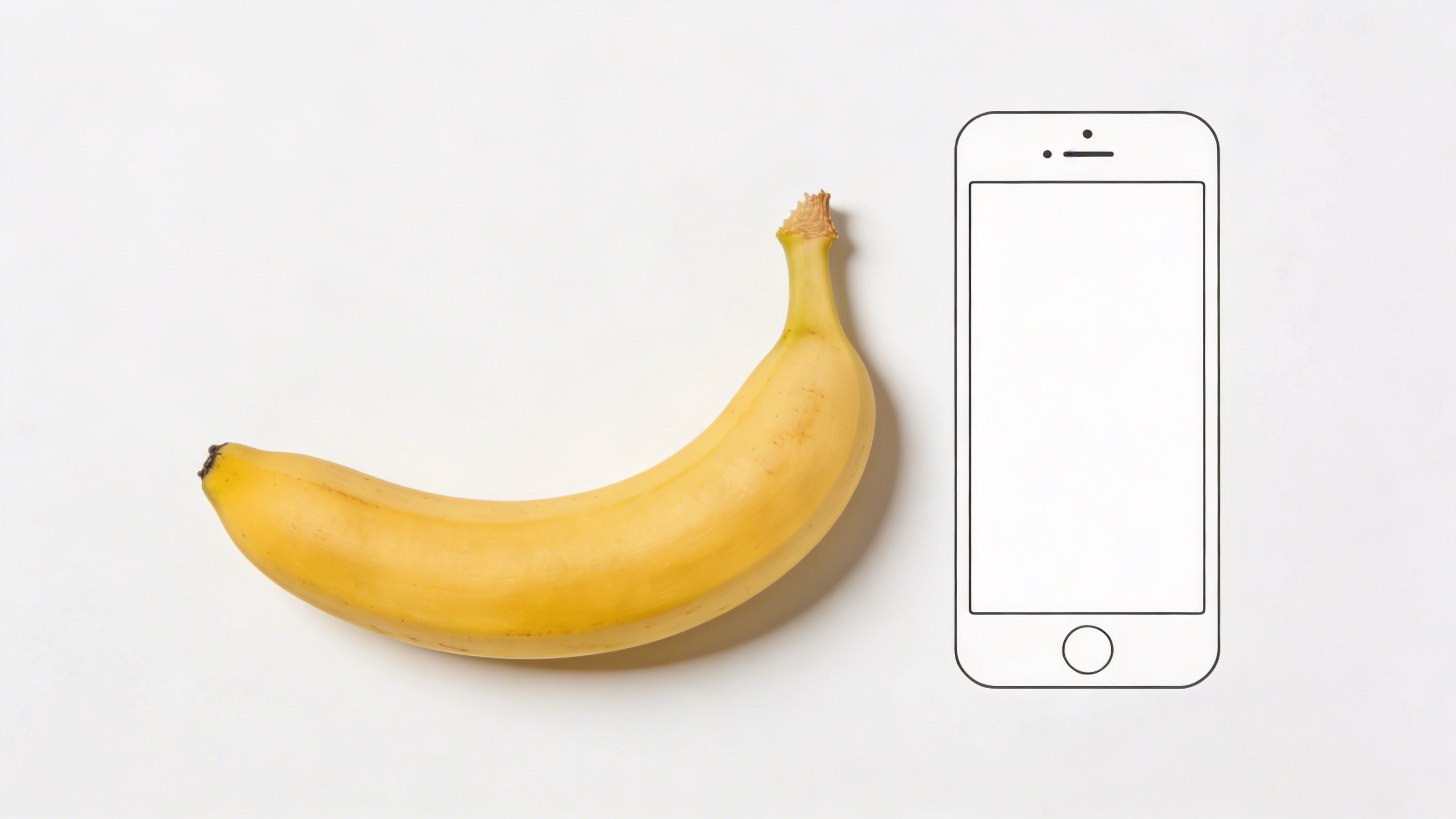 Prompt: "clean editorial stock photo, banana beside a minimal smartphone silhouette with blank screen (no UI), on a pale blue desk surface, soft daylight, subtle shadow, modern tech vibe, copy space above, photoreal"